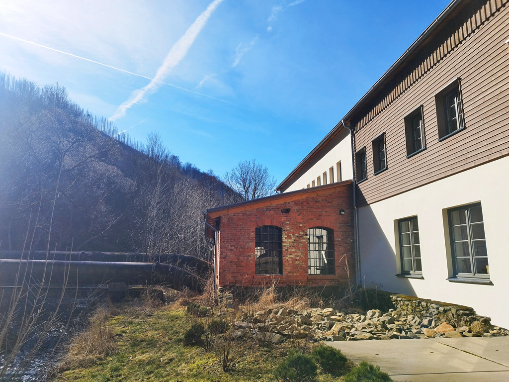 Während eines Urlaubs im Harz entdeckten Friederike und Hartmut Windels das zum Teil verfallene Industriedenkmal. Mitte 2021 erwarben sie das Gebäude samt Grundstück, entwickelten die Teilruine und brachten Leben zurück in die historischen Gebäude. Es entstanden insgesamt sechs Ferienwohnungen, wovon sich eine im ehemaligen Kesselhaus befindet, sowie eine Eventfläche. Es war dem Ehepaar Windels wichtig, den industriellen Charme des Gebäudes in Teilen zu erhalten und dass sich sowohl Altes als auch Neues wiederfinden lassen. Dies lässt sich an der Fassade des Gebäudes, in der Gestaltung der Innenräume, aber auch bei der Betrachtung des Gesamtensembles erkennen. Angrenzend an die Eventfläche befindet sich ein Innenhof, der von den Außenmauern eines ehemaligen Gebäudeteils umgeben ist. Hierbei wurde sich bewusst dafür entschieden, die Ruinenteile stehen zu lassen, um daran zu erinnern, in welchem Zustand das gesamte Gebäude war. Die Finanzierung setzte sich hauptsächlich aus Eigenmitteln, mit einer kleineren Förderung aus dem Programm „Bergdörfer-Region“ (ZILE) und einer KfW-Förderung zusammen. Nach Abschluss der Sanierung im Sommer 2023 öffneten Friederike und Hartmut Windels die Schleiferei Zwei erstmals für Tourist*innen. Der Göttinger Literaturherbst 2024 entdeckte diesen besonderen Ort direkt an der Sieber und veranstaltete hier eine Lesung.