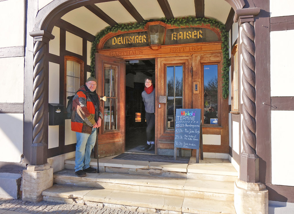Das großvolumige Gebäude liegt unweit vom Herzberger Schloss, am Ende der Fußgängerzone, welche zum Marktplatz, dem Juessee oder dem Kurpark führt. Der imposante Fachwerkbau stammt aus dem Jahr 1654 wurde somit kurz nach dem Dreißigjährigen Krieg erbaut. Er steht im Vorwerk des Schlosses und war einst das Zuhause der fürstlichen Mundköche. Zudem diente er als Herberge für die Entourage der fürstlichen Besucher*innen. Beim Deutschen Kaiser handelt es sich um ein stark ortsbildprägendes Gebäude, welches sich seit 2010 im Besitz der Familie Schröder befindet. Bevor diese es erwarb stand es circa 25 Jahre leer. Mit Hilfe einer breiten Finanzierung haben Kimberley und Stefan Schröder den Ort wiederbelebt und neben einer Gastronomie einen vielseitigen Veranstaltungsort für die Stadt Herzberg am Harz geschaffen. Für die Zukunft ist eine Werkstatt im Haus geplant, in der traditionelle handwerkliche Workshops stattfinden sollen. Zur Finanzierung der umfangreichen Sanierung des Ausbaus erhält Familie Schröder zusätzlich zu ihrem Eigenkapital eine Vielzahl von Förderungen. Ein bedeutender und der wohl größte Anteil stammt aus dem LEADER-Programm. Zusätzlich flossen Mittel aus der Kommune, der Kulturförderung sowie eine KfW-Förderung in das Projekt. Was besonders zu bemerken und Kimberley und Stefan Schröder bestimmt auch mit Blick auf die Finanzen in die Karten spielte ist, dass viele Materialien, vor allem die alten Eichenbalken, wiederverwertet werden konnten. Die hierdurch eingesparte sog. graue Energie stellt einen wichtigen Nachhaltigkeitsaspekt darstellt.