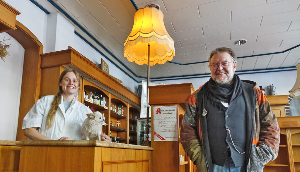 Im Gespräch mit Jörg Bremer und der Simone Standhardt erfahren wir mehr darüber, welche Maßnahmen die Stadt und vor allem die Bürger*innen von Herzberg ergreifen und wo bereits Entwicklungen zu verzeichnen sind. Simone Standhardt, ist als Stadtjugendpflegerin tätig und gehört ehrenamtlich selbst zu den Gestalter*innen der Stadt und erzählt von der Umnutzung der alten Schloss Apotheke zu einem Ort, an dem sich Menschen unterschiedlichen Alters aus Herzberg und Umgebung treffen – und dass jetzt kalte Getränke über die Ladentheke gehen, wo einst Medikamente verkauft worden sind. Die Entwicklung einer Apotheke zu einer Bar mit besonderem Charme, wo gelegentlich auch kleinere Konzerte stattfinden, hat sich allgemein sehr positiv ausgewirkt. Es gibt jedoch Hindernisse, die es ungewiss machen, ob die Menschen auch noch länger hierherkommen können oder der Betrieb nur von kurzer Dauer ist. Auch knapp 100 Meter weiter in Richtung der Bundesstraße, die durch den Ort verläuft, hat sich im „Deutschen Kaiser“ in den vergangenen Jahren viel getan. Die Gaststätte ist zusammen mit der Schleiferei Zwei im Nachbarort Sieber ein weiteres Beispiel dafür, dass Herzberg am Harz eine Stadt ist, in der man nicht aufgibt, sondern alles versucht, um den Menschen ein lebenswertes Umfeld zu bieten.